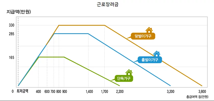 ● 맞벌이 가구 최대 지급액: (총금여액 3,800 만원 미만인 경우) 330만원