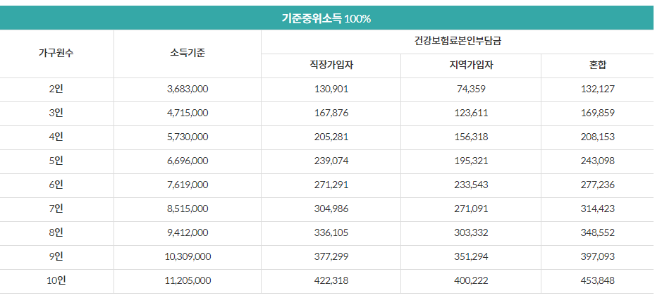 정부의 지원 정책을 신청 할때 기준 중위소득이 중요합니다.